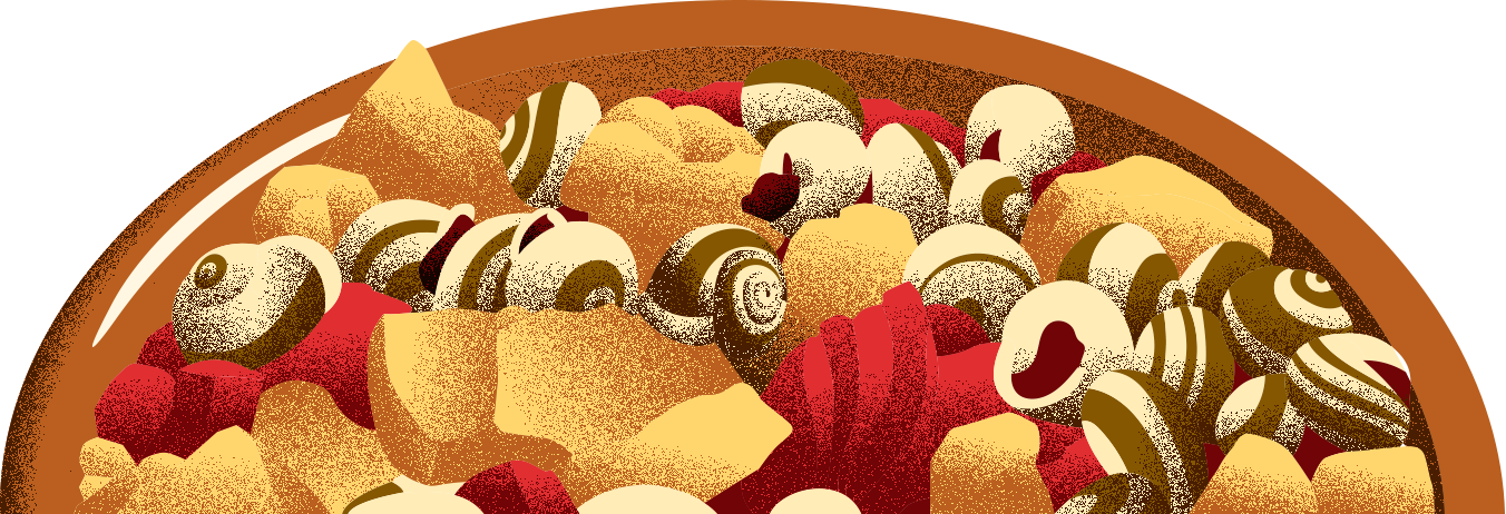 Els cargolins no són només un acompanyament al plat. Són un element clau de l'espineta que complementa de manera excel·lent els beneficis dels ω-3. Amb una llarga tradició a la cuina catalana, els cargols formen part de la nostra dieta des de temps remots. De fet, els romans ja cultivaven aquests mol·luscs en recintes específics. Nutricionalment parlant, són una font excel·lent de proteïnes d'alt valor biològic, és a dir, aporten tots els aminoàcids essencials amb un alt contingut en aigua i molt baix en hidrats de carboni i lípids -de 60 a 90 kcal per 100 g- cosa que els fa ideals per a dietes hipocalòriques. A més, contenen dosis rellevants de niacina (vitamina B3), ferro, magnesi, zinc, seleni i fòsfor, que reforcen el sistema immunitari i el manteniment i la integritat dels ossos.